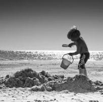 Da så han en lille dreng, der sad og gravede et dybt hul i sandet ved strandbredden. Dybere og dybere.