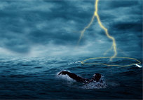 Pludselig slog et, lyn ned og kløvede den mast, han stod ved, og slyngede ham ned på dækket Franklin fortæller: »Da jeg rejste mig, var mine første ord: »Jeg takker dig, min Gud.« Hvorfor takker jeg? Fordi Gud påny havde skænket mig livet? Nej, derpå tænkte jeg først senere. Men jeg takkede Gud, fordi han havde mindet mig om, hvem han var og hvem jeg var. Han: altid den samme, den eneste, den Almægtige. Og jeg: Intet andet end en orm.«