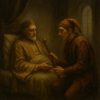 En dag blev kongen dødssyg, og narren blev hentet. »Jeg skal ud på en lang rejse,« sagde kongen. »Bliver du længe væk?« spurgte narren. »Ja, længe.« - »Men du kommer vel engang tilbage?« - »Nej, fra den rejse vender ingen tilbage;« - »Men så har du vel i tide truffet forberedelser til den lange rejse?« - »Nej, det er det, der er ulykken. Jeg har aldrig villet tænke på denne rejse.«